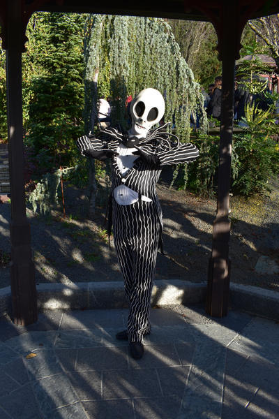 すると、ファントムマナーのキューラインの隣のガゼボで、『ナイトメアー・ビフォア・クリスマス』のジャック・スケリントンのグリが!!